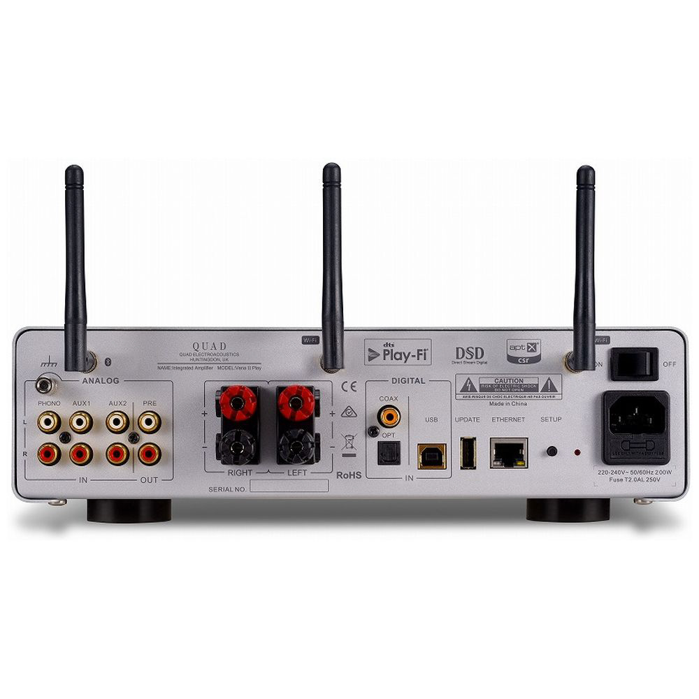 QUAD Vena II Playは、VenaIIから外観だけでなくSabre32リファレンスDACのES9018K2MやaptX Bluetooth接続など、同じハイスペック設計を多く採用しています。また、ターンテーブル用のMMフォノステージを含む、デジタルとアナログの両方の接続端子を備えています。