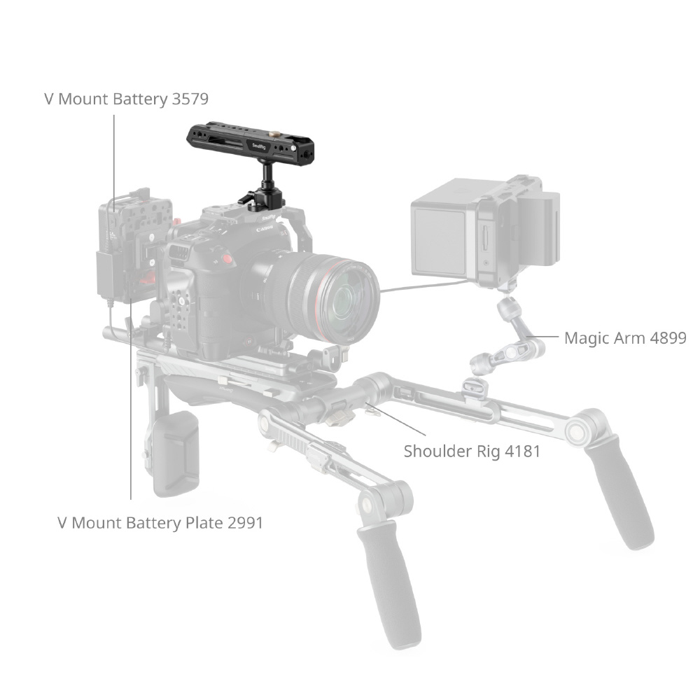 SmallRig 回転トップハンドル(NATOクランプ付き)4152は、トップハンドル、NATOレール、六角レンチなどを備え、カメラの動きを強化するように設計されています。
