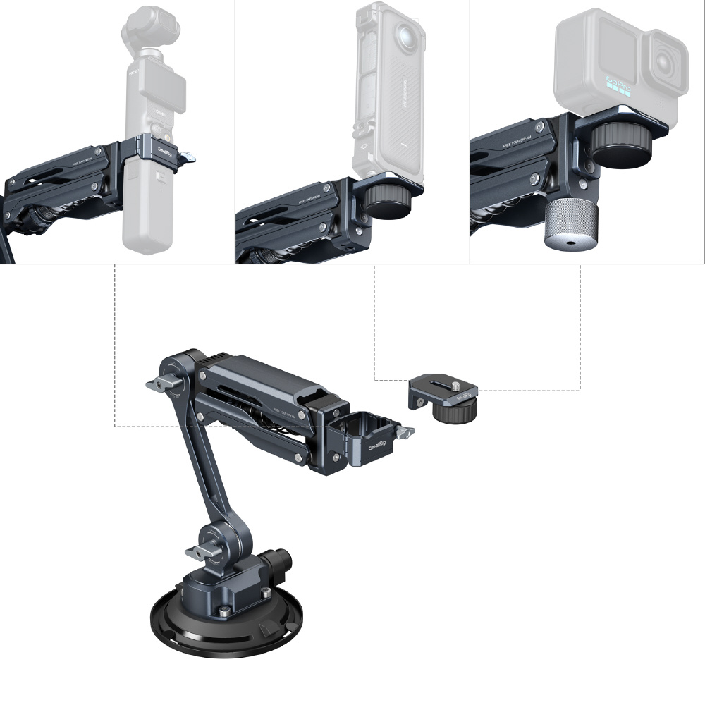 1. DJI Osmo Pocket 3、GoPro HERO13 Black、Insta360 X4 / X3 など、底部に 1/4 インチ - 20 のネジ穴を備えたアクション カメラと互換性があります。