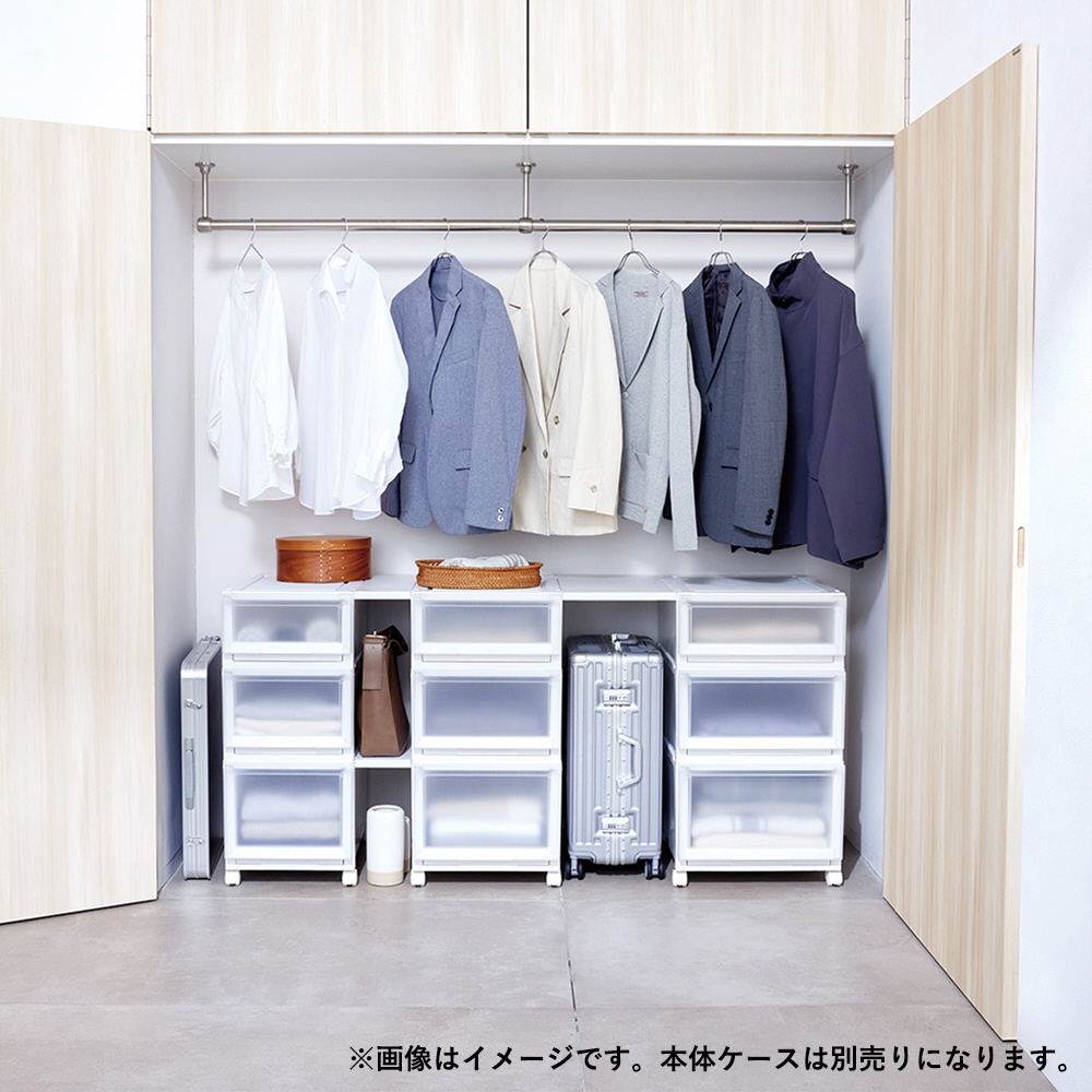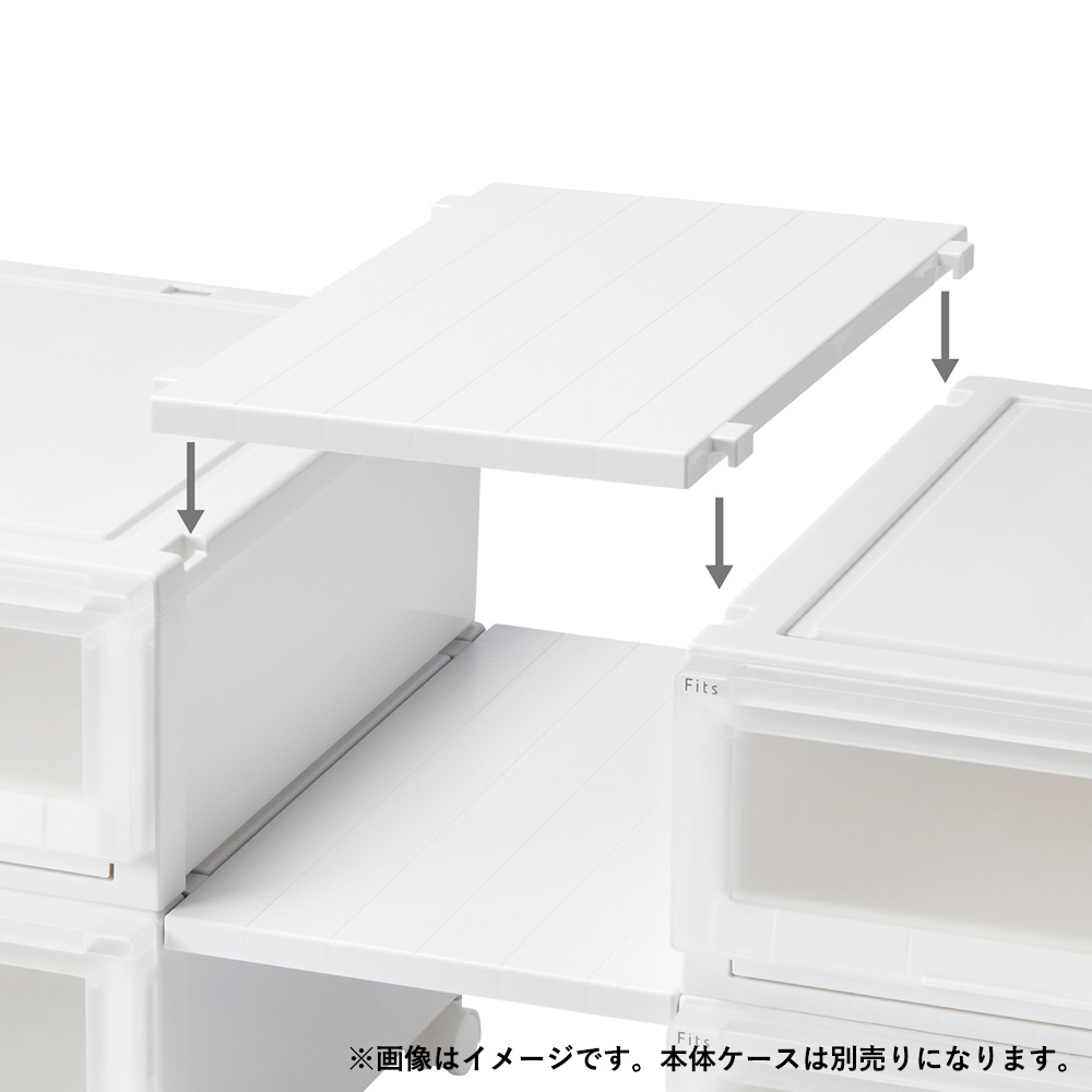 ケース同士をしっかりと固定しながら、収納スペースをより便利に活用できます。棚の上に物を置けるので、収納力がアップし、使い勝手も向上。デッドスペースの有効活用ができます。