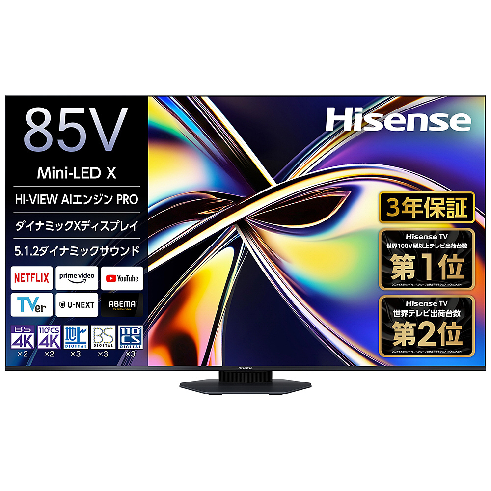 | 商品名 | 液晶テレビ 85U9R [85V型 /Bluetooth対応 /4K対応 /BS・CS 4Kチューナー内蔵 /YouTube対応] |