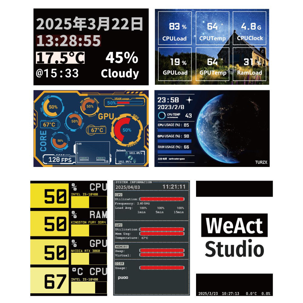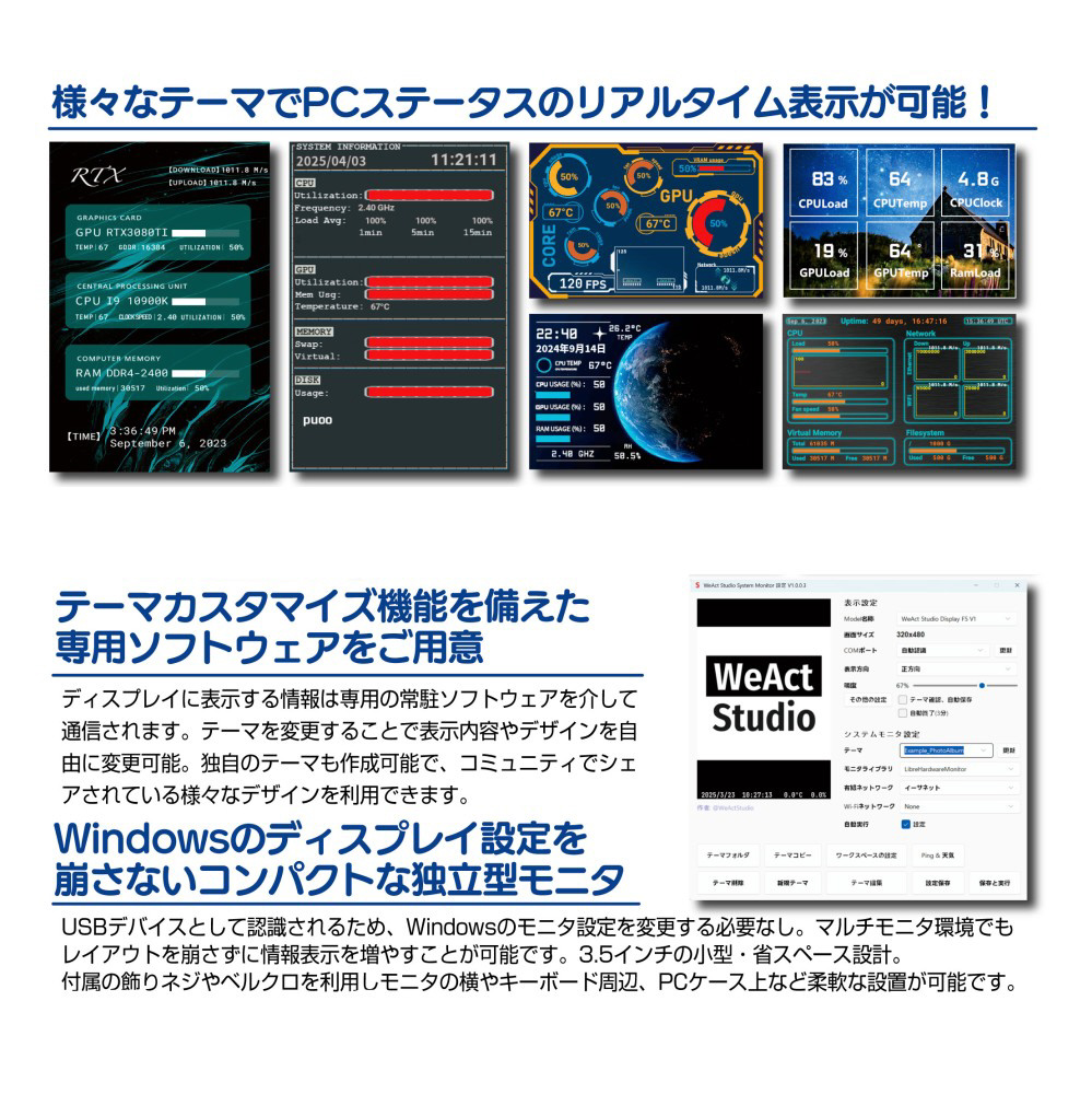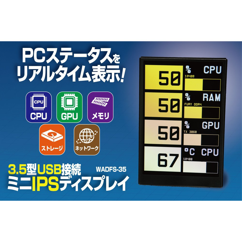 専用アプリを介してCPUやGPU、メモリ、ストレージ、ネットワークなどの情報をリアルタイムに表示可能な小型IPSモニタです。