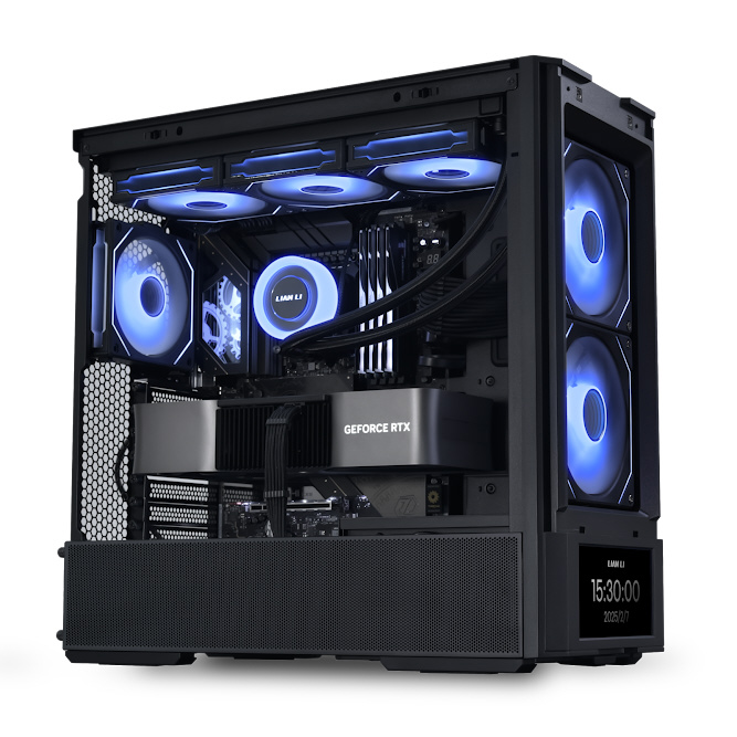 「 LANCOOL 207 Digital」は、従来の標準的なATXレイアウトを見直すことにより、M-ATX級のコンパクトなサイズと優れた冷却能力を両立させたATX対応ミドルタワーケースでる「LANCOOL 207」に遊び心を加え、リアルタイムでシステムを監視し、カスタマイズ可能なLCDスクリーンを内蔵したモデルです。