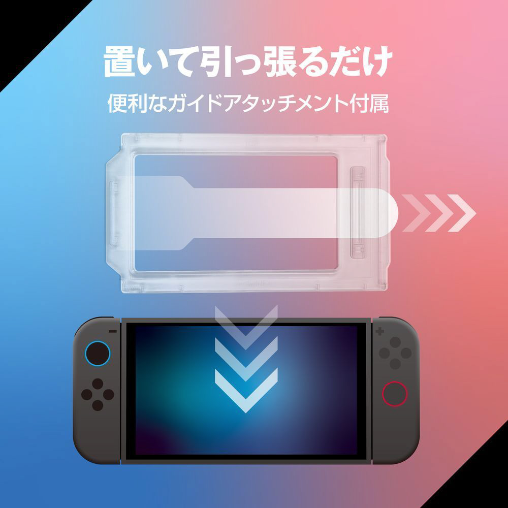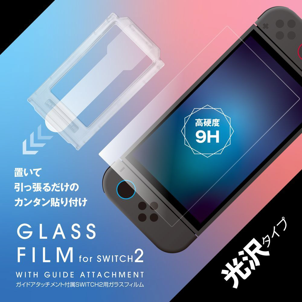 Switch2対応!美しい光沢タイプの液晶保護ガラスフィルムです。ガイドアタッチメント付きなので細かい作業が苦手な方でも安心!