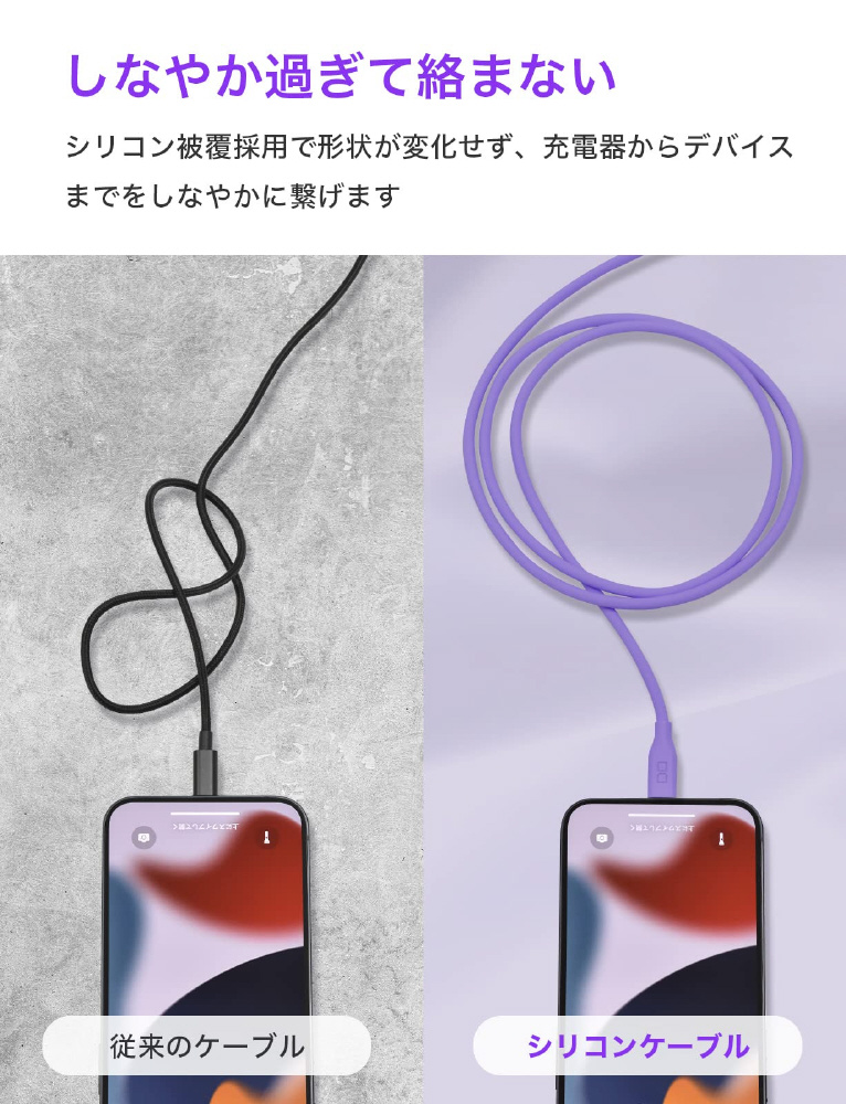 しなやか過ぎて絡まない 柔らかいシリコンケーブルシリーズ