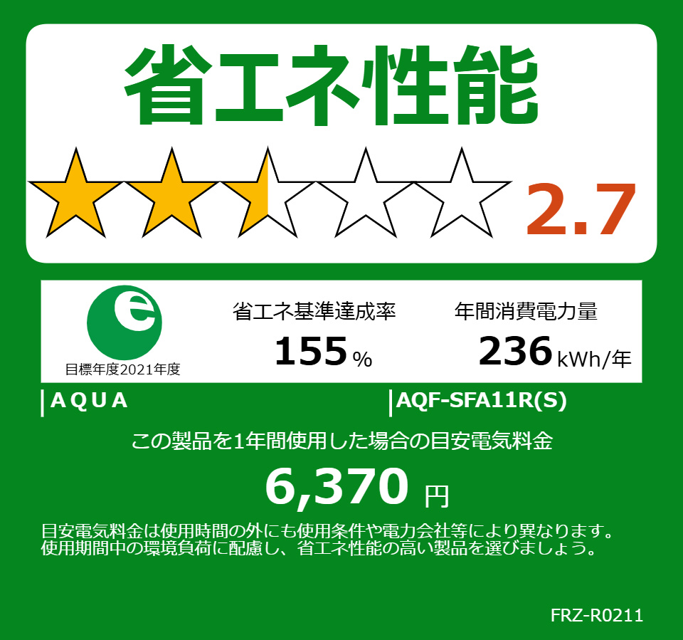 | 省エネ性能(目標年度2021) | ★★☆☆☆ 2.1 |
