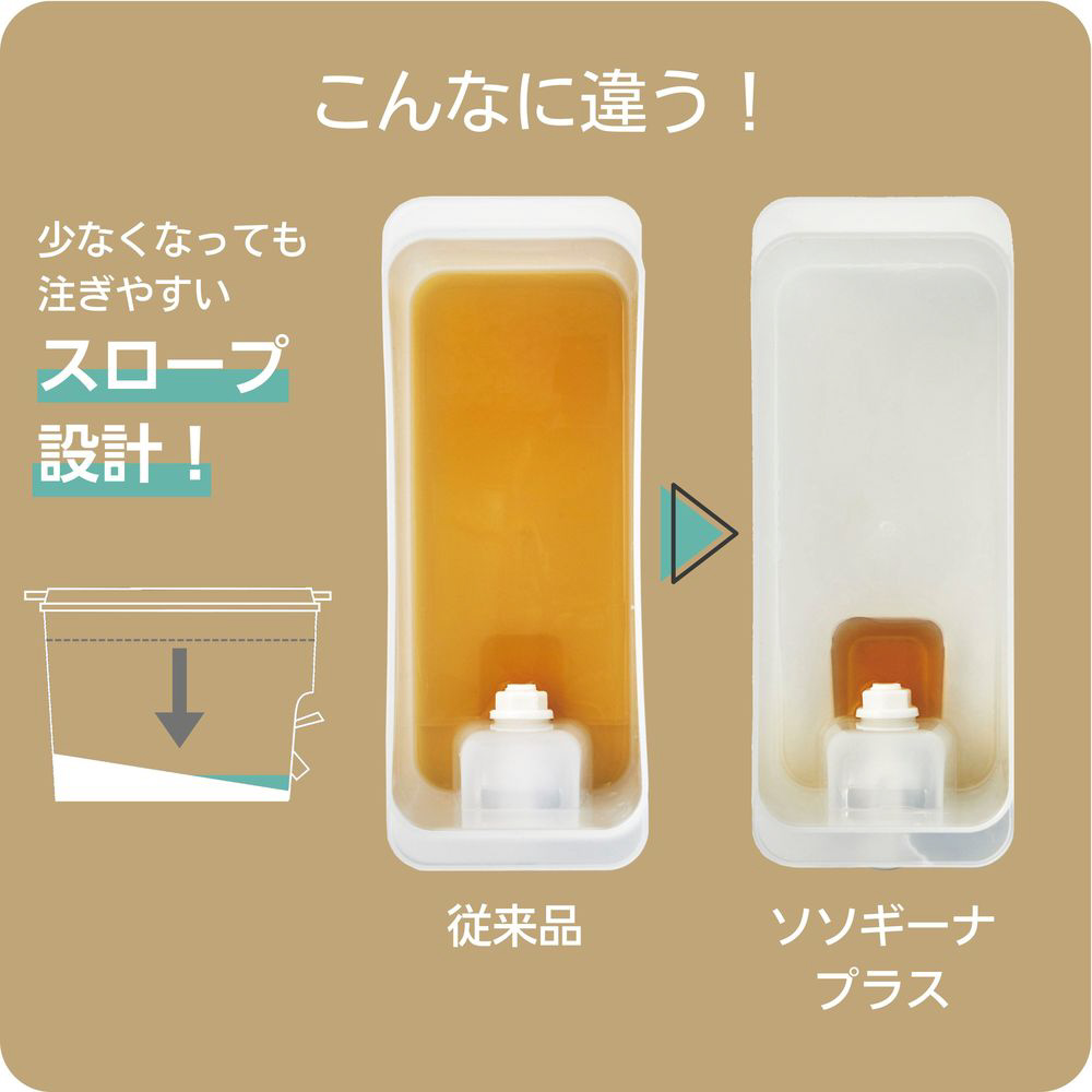 少なくなっても注ぎやすい、傾斜付きのスロープ設計!