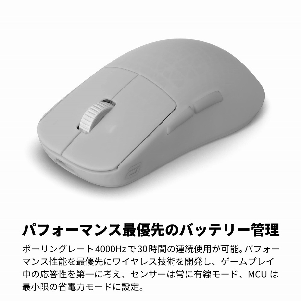 「OP1w 4K」は、小型サイズのゲーミングマウス「OP1」のワイヤレス・4Kポーリングレートモデル。