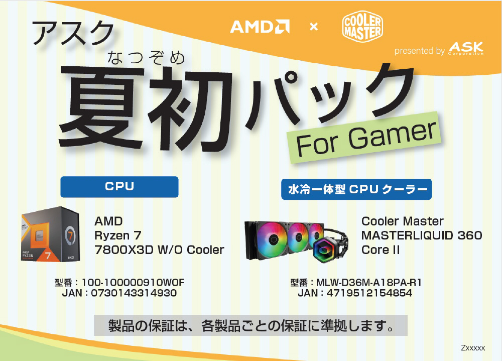 アスク夏初(なつぞめ)パック2025 for Gamer R7 7800X3D + MASTERLIQUID 360 Core II ASK7800X3DMLWD36MA18PAR1