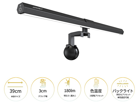 「ゲーミングモニターライト 明るさ/色温度調整 目に優しい USB-A 手元を明るく照らすデスクライト【2年保証】」