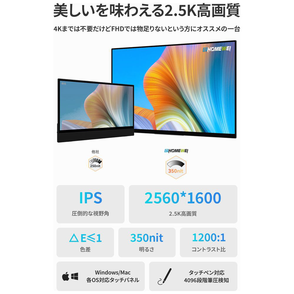 17インチ、アスペクト比16:10の大画面!タッチペン対応2.5Kモバイルモニター