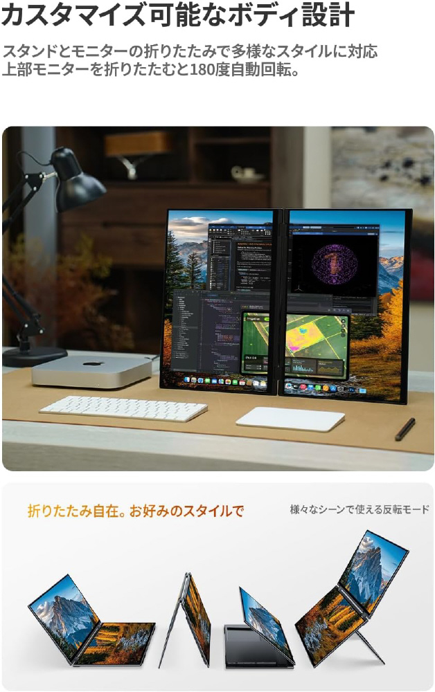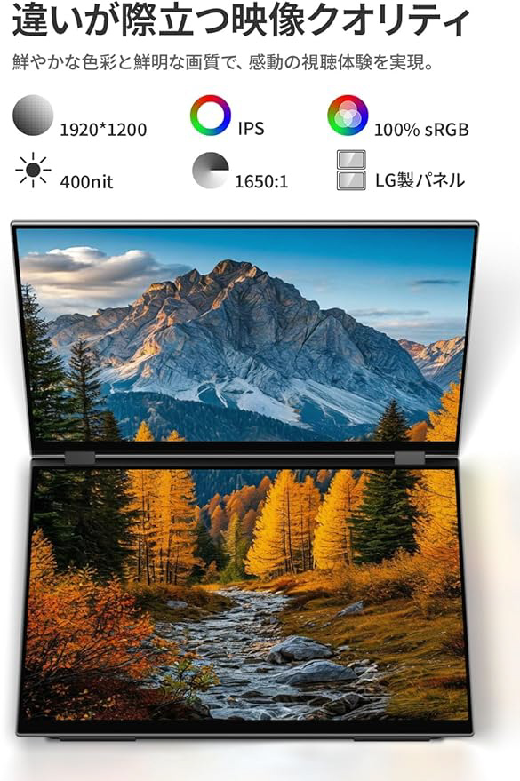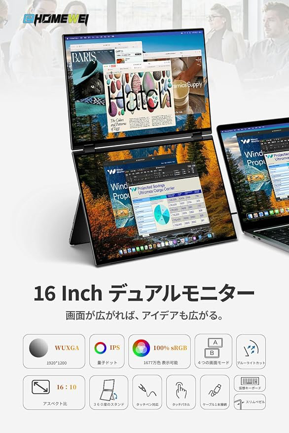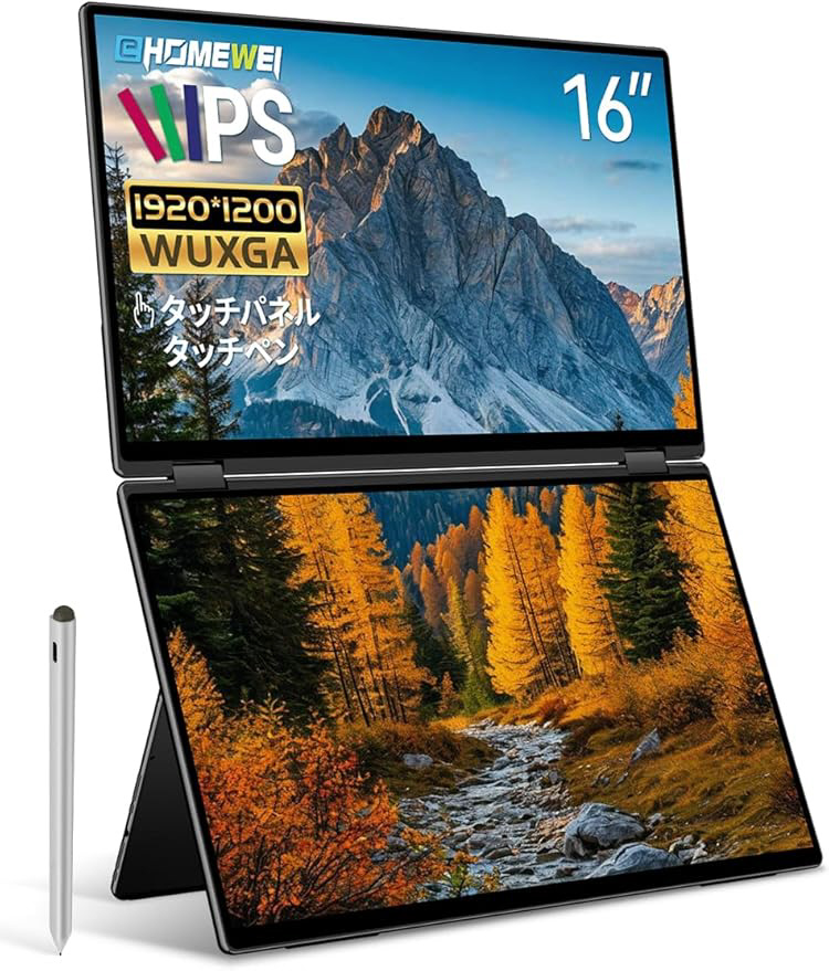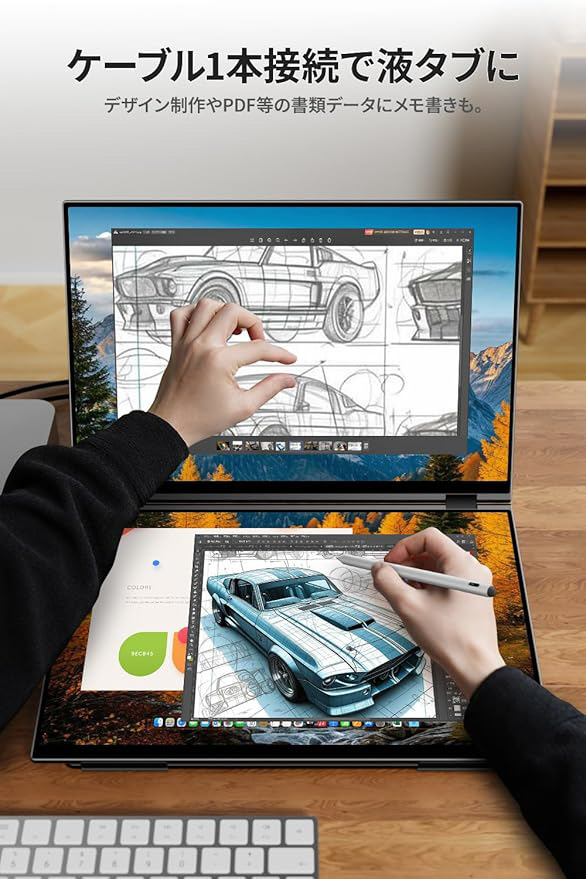 4つの画面モード切替可能。ケーブル1本で接続できる16インチタッチペン対応QLEDデュアルモニター