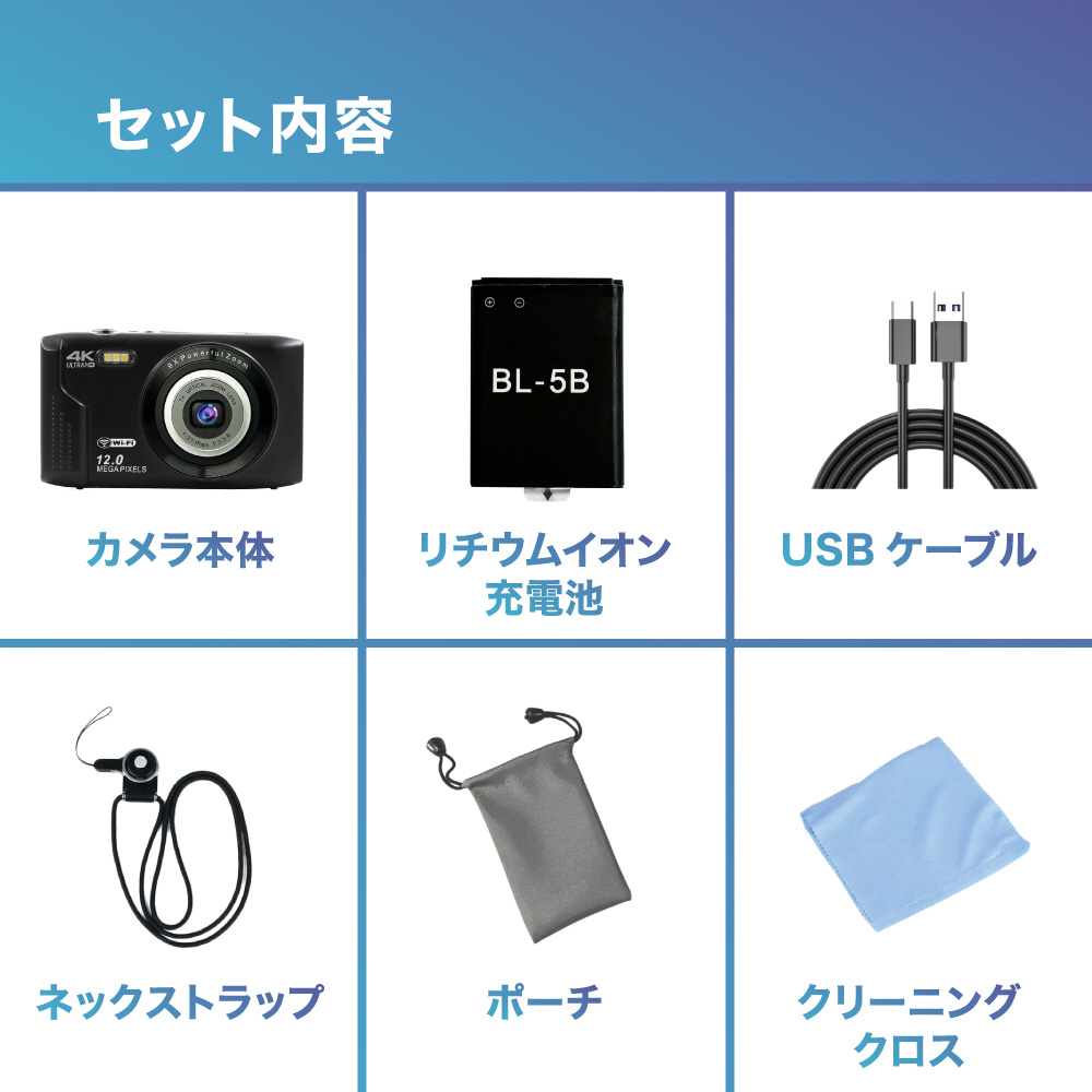 ●セット内容 :カメラ本体・リチウムイオン充電池・USBケーブル・ネックストラップ・