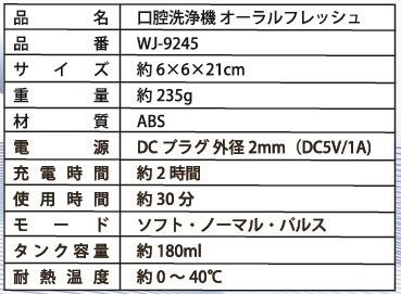 | 商品名 | WJ-9245 口腔洗浄器 オーラルフレッシュ |