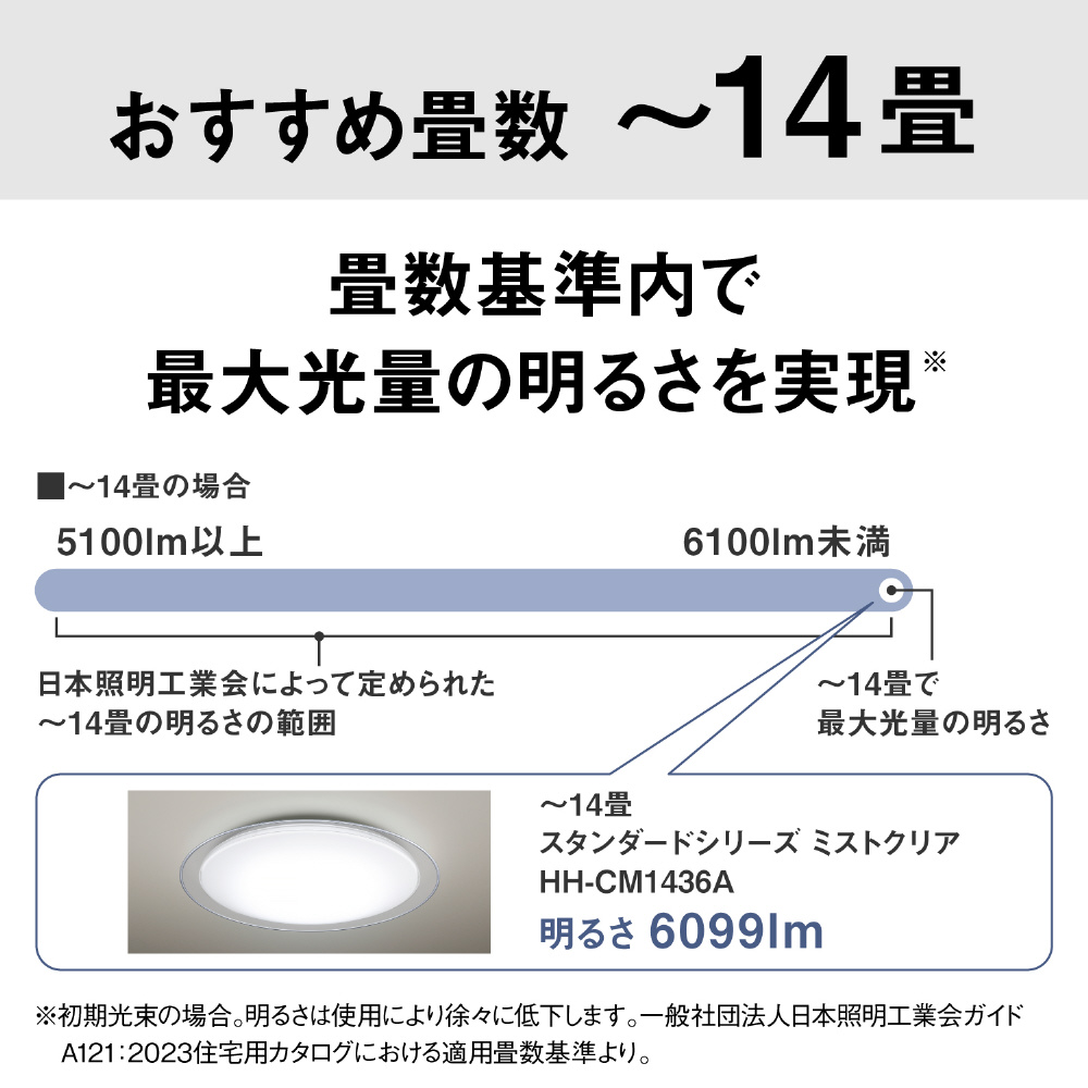 LEDシーリングライト 高効率タイプ ミストクリア スタンダードシリーズ HH-CM1436A [14畳 /昼光色〜電球色 /リモコン付属 /電気工事不要]