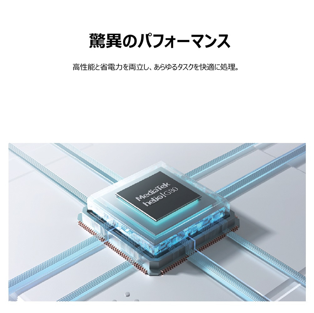 | CPU | MediaTek Helio G80 オクタコアCPU搭載(8コア) |