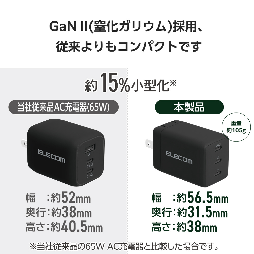 充電器 USB Type-C 高速充電 PD 67W / PPS対応 3ポート ( USB-C ×3 ) GaN II採用 PSE認証 コンパクト 折りたたみ式プラグ 【 MacBook iPhone iPad Galaxy Android AirPods 対応 】 MPA-AC11267BK 【sof001】