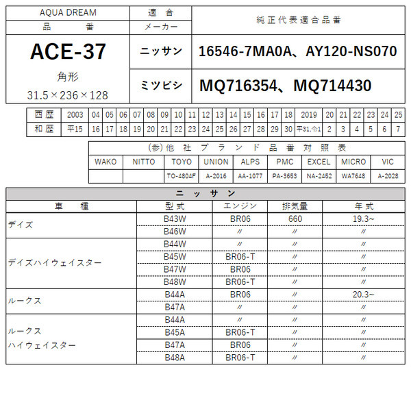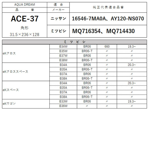 ■純正共通品番:「ニッサン」 16546-7MA0A、AY120-NS070・「ミツビシ」 MQ716354、MQ714430