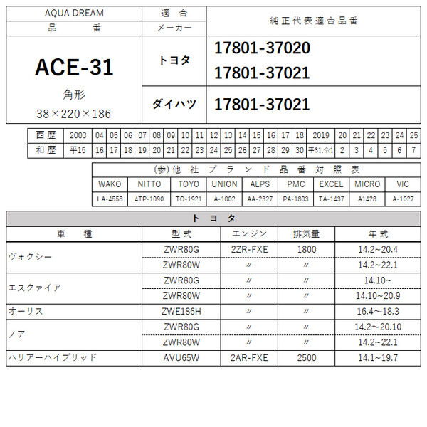 ■純正共通品番:「トヨタ」17801-37020、17801-37021・「ダイハツ」17801-37021