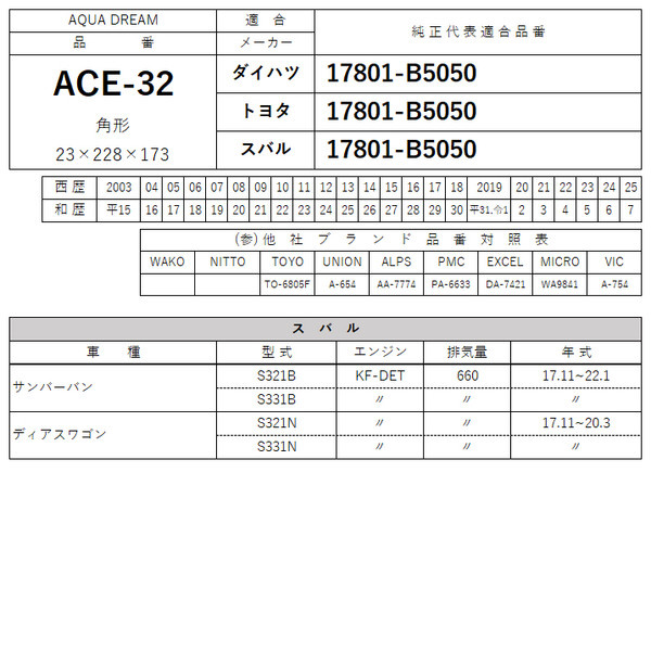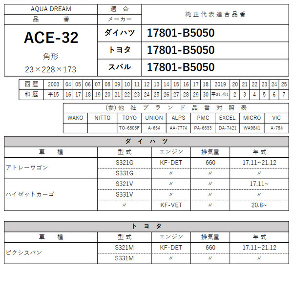 ■純正共通品番:「ダイハツ」 17801-B5050・「トヨタ」 17801-B5050・「スバル」 17801-B5050