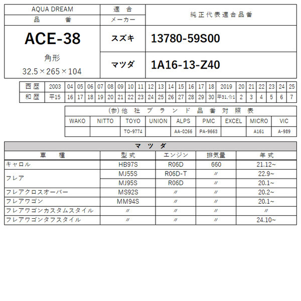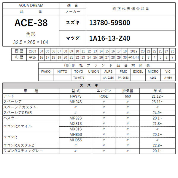 | 商品名 | PLATINUM エアフィルター スズキ・マツダ車用 (純正品番:13780-59S00 等) AD-ACE-38 |