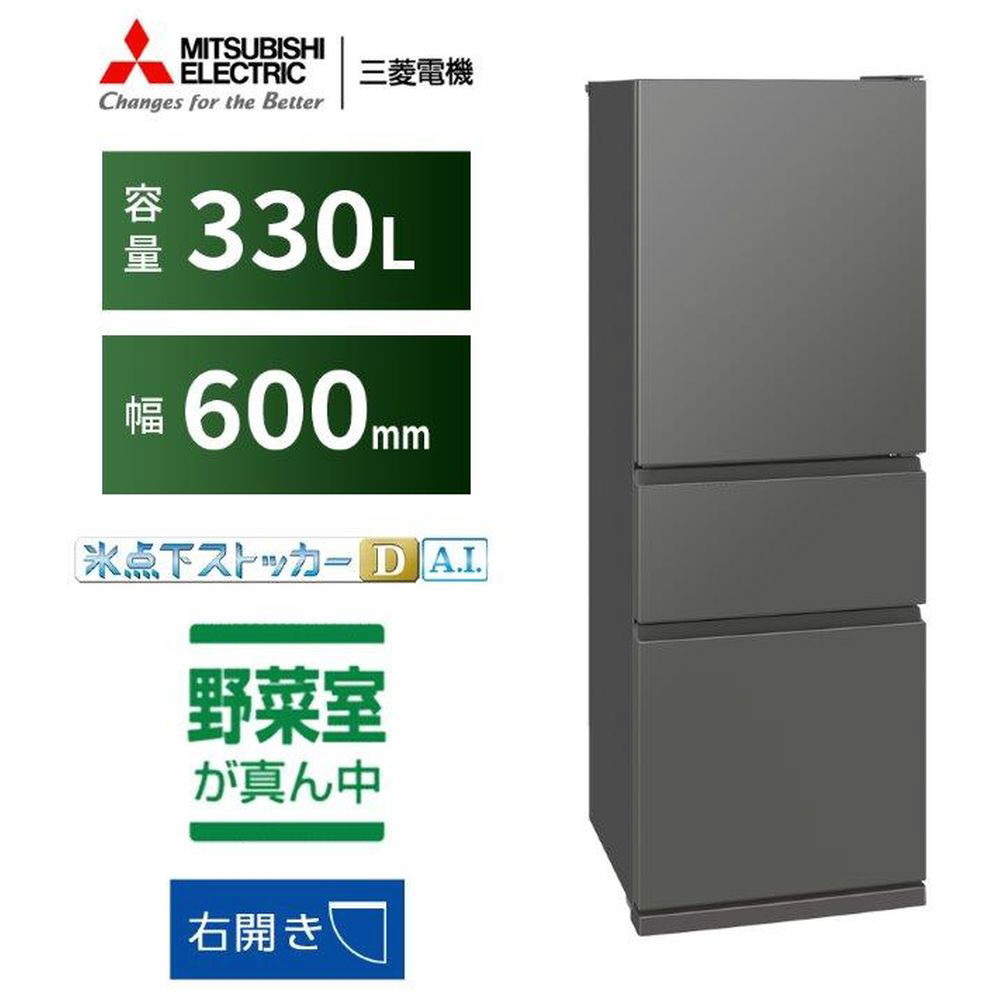 三菱冷蔵庫CXシリーズ 三菱冷蔵庫CXシリーズ マットアンバーグレー MR-CX33M-H [60(cm) /330L /3ドア /右開きタイプ /2025年] 【基本設置料金セット】