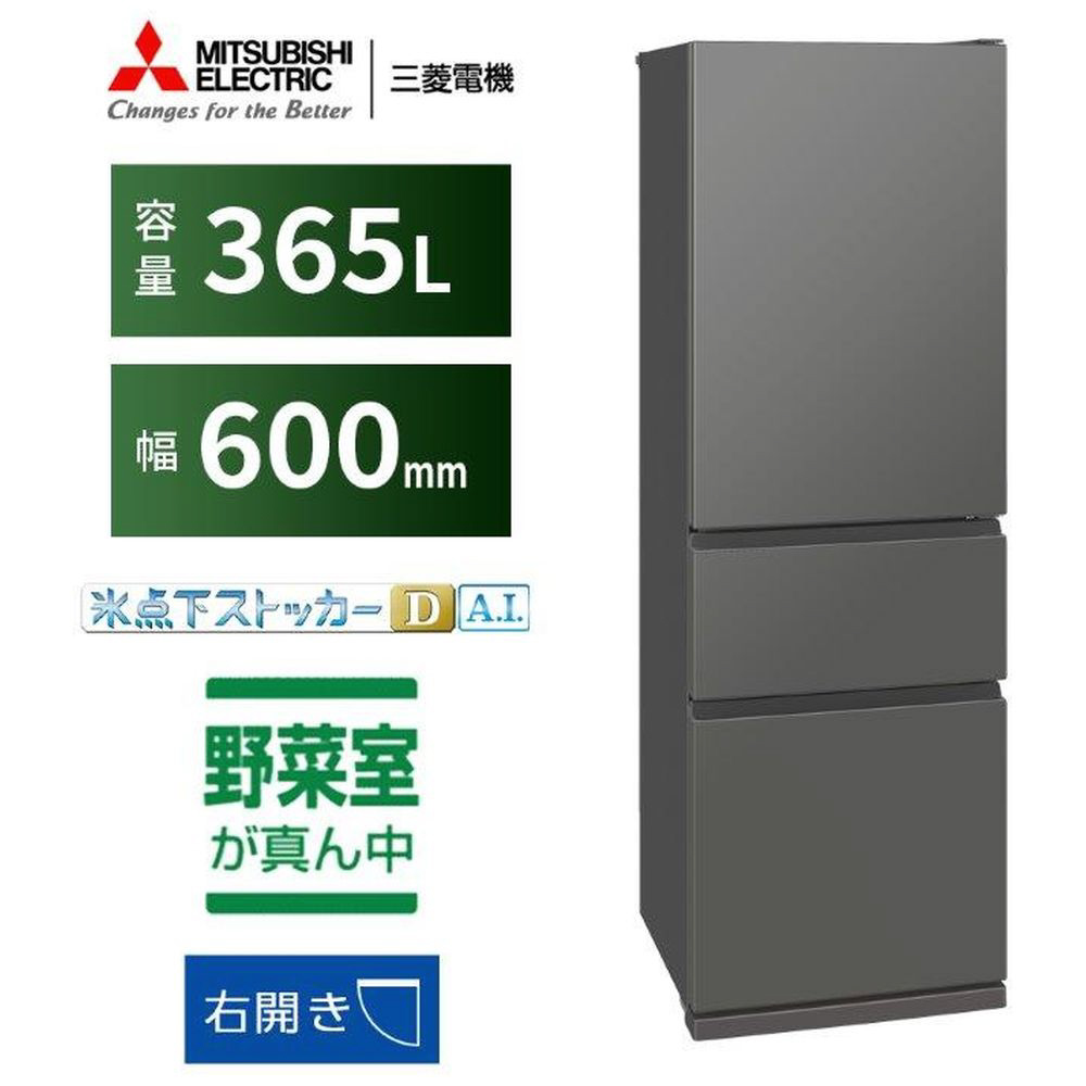 三菱冷蔵庫CXシリーズ 三菱冷蔵庫CXシリーズ マットアンバーグレー MR-CX37M-H [60(cm) /365L /3ドア /右開きタイプ /2025年] 【基本設置料金セット】