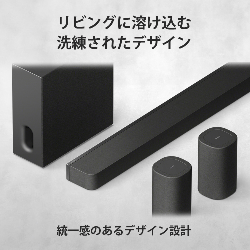 ソニーのサウンドバーは単体でもサラウンドサウンドを楽しめますが、対応のサウンドバーにBRAVIA Theatre Rear 8(SA-RS8)を接続することで、フロントのサウンドバーからの音に後方からの音が加わります。前後からの音に包み込まれ、さらに臨場感豊かなサラウンドサウンドをお楽しみいただけます。