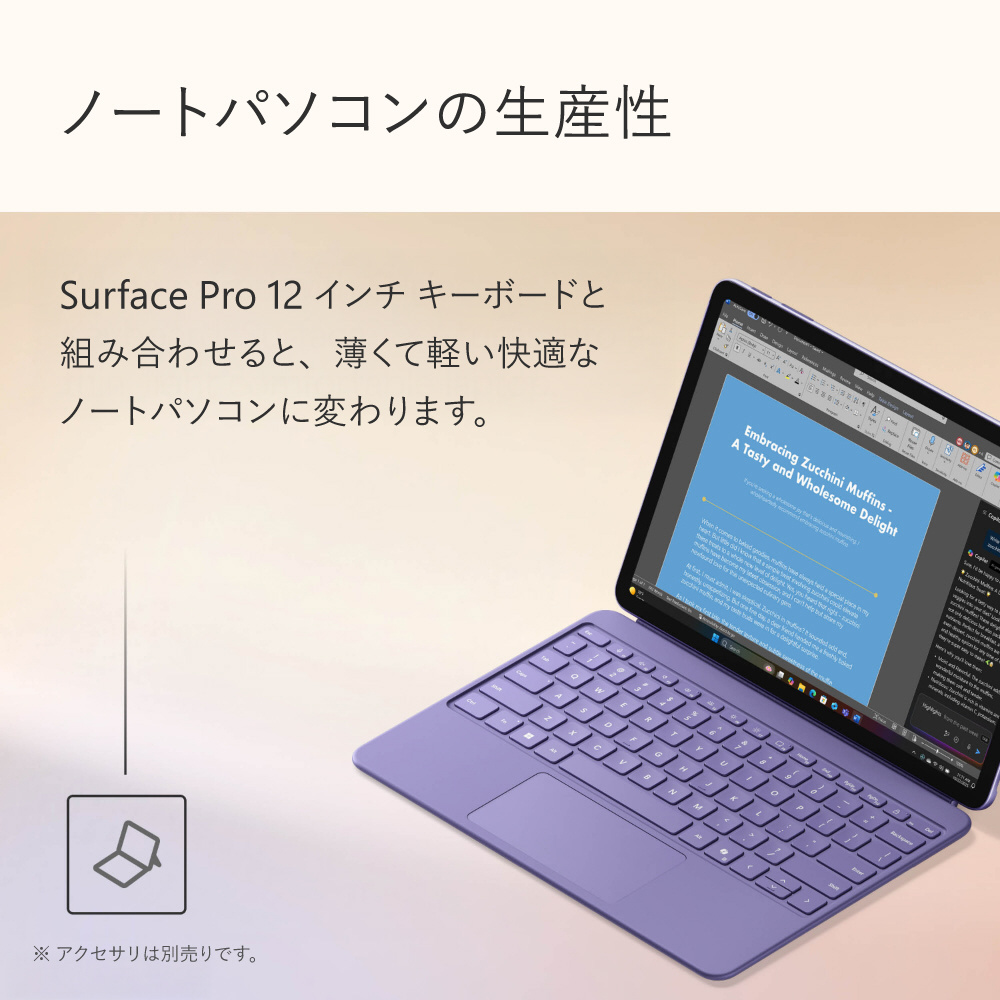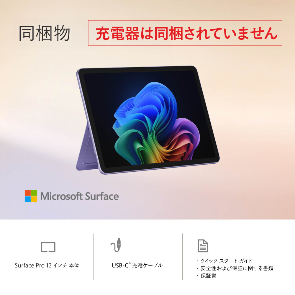 Surface Pro 12 インチ バイオレット EP2-27747 [Copilot+ PC /12.0型 /Windows11 Home(Arm版) /Snapdragon X Plus /メモリ:16GB /UFS:512GB /M365 (24か月) or Office 選択可能 /2025年6月モデル] 【sof001】