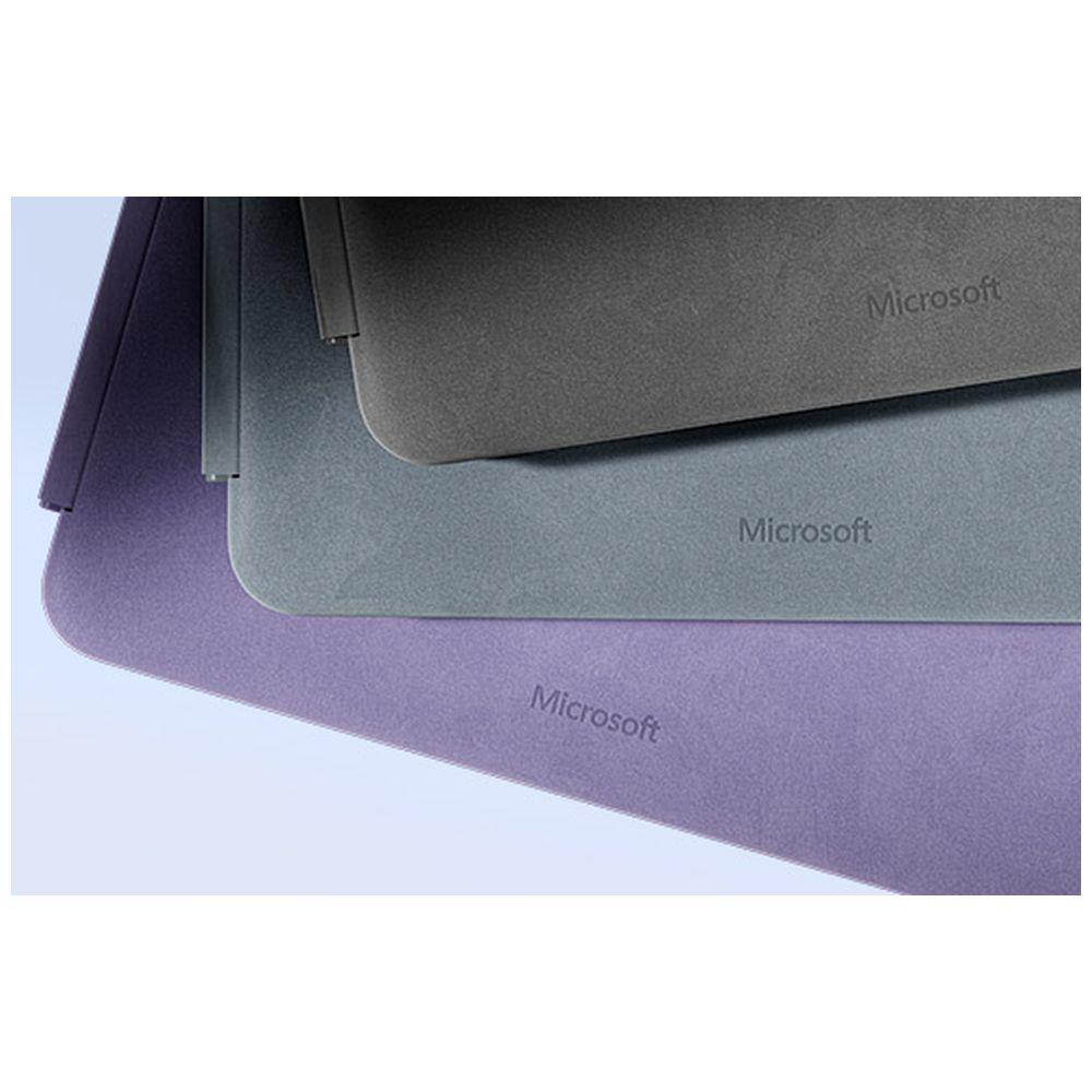 Surface Pro 12 インチ(別売り)用のスマートで快適性と耐久性に優れたキーボード。3色のカラー展開に合わせて新しくデザインされたオーシャン グリーン、バイオレット、ストーン グレーのラインアップです。(※掲載のキーボードは英語版です。実際の製品は日本語版となり、キー配列が異なります。)