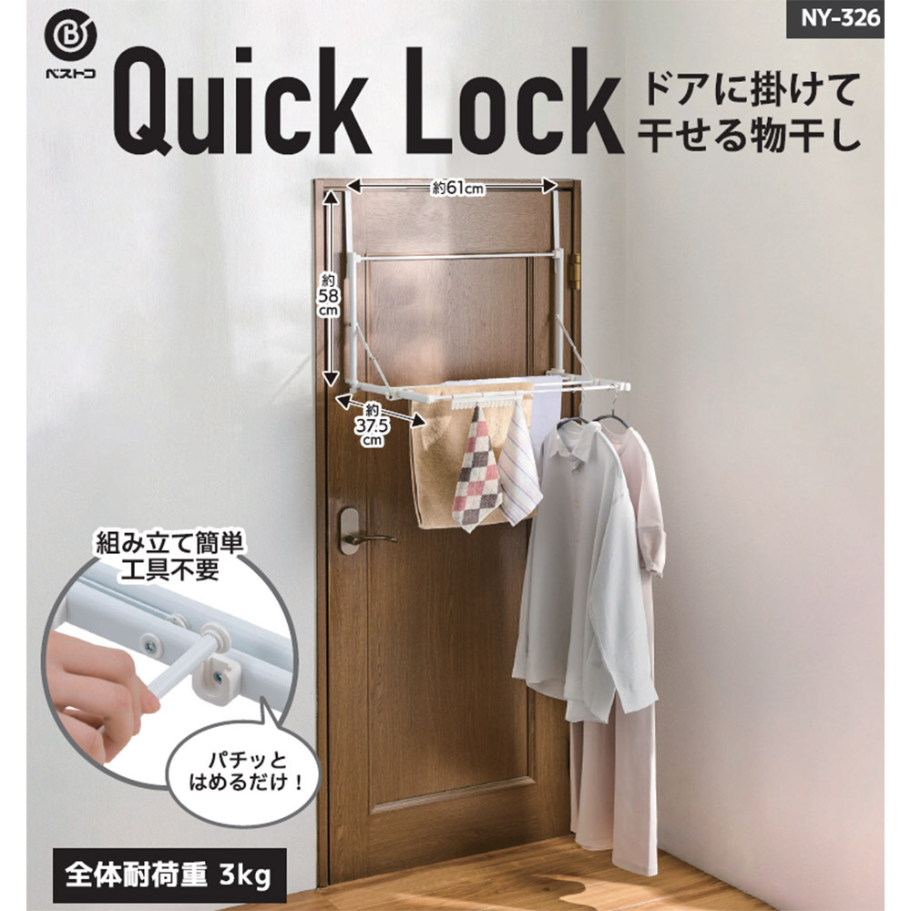 ドアハンガー フック 伸縮 折り畳み 室内干し 軽量 Quick Lock ホワイト NY-326