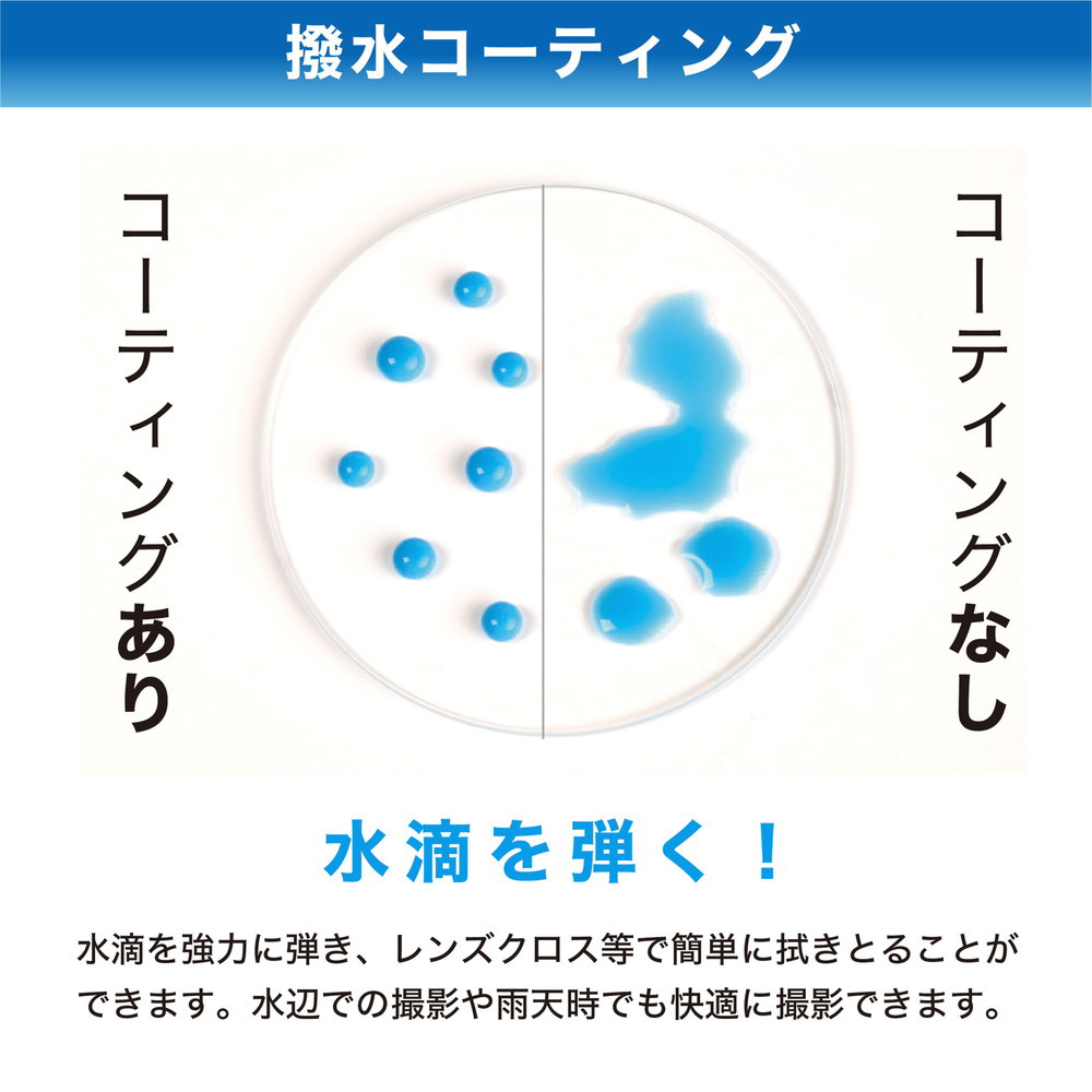 超低反射0.2%を実現。撥水・撥油機能を備えたレンズ保護フィルター。