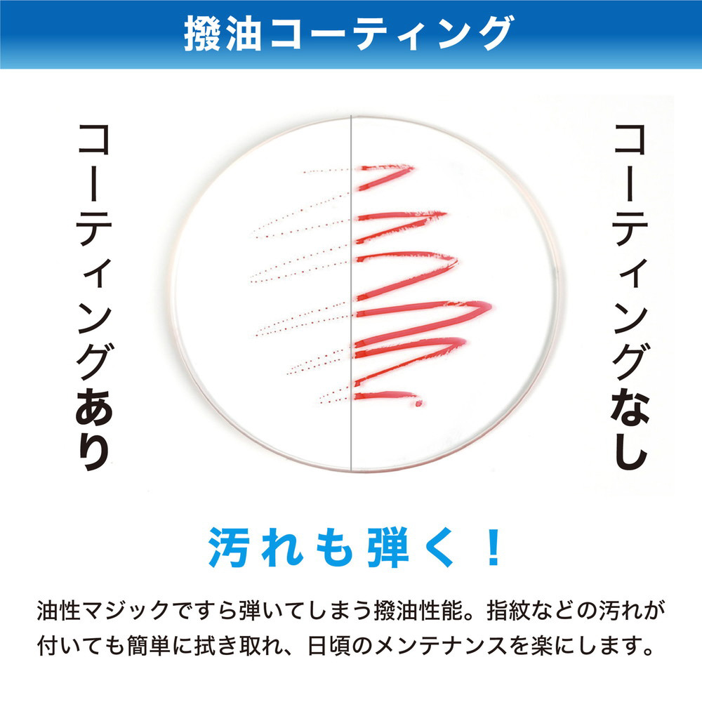耐久性に優れた撥水・撥油コーティングを採用。水や油を強力に弾き、汚れが付着しても簡単に拭き取ることができます。