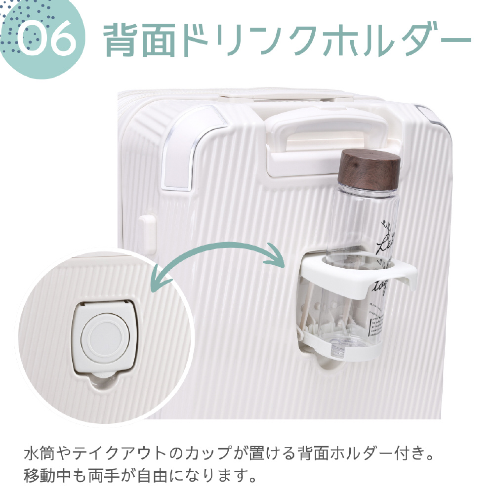 水筒やテイクアウトのカップが置ける背面ホルダー付き。移動中も両手が自由になります。