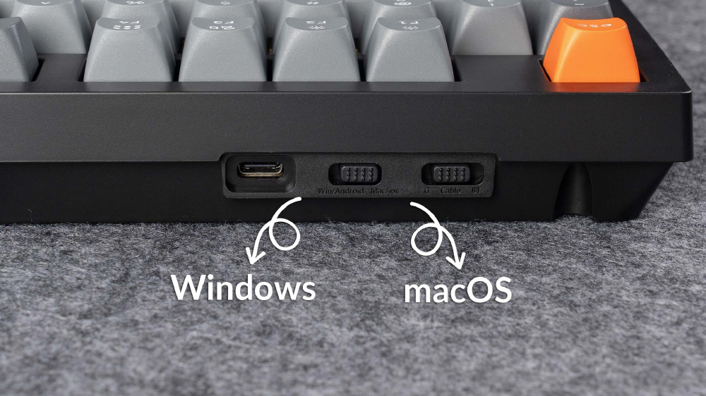 K10 MaxはMacユーザーの体験を考慮して設計されながらも、Windowsデバイスとの互換性も確保しています。システム切り替えスイッチと、WindowsおよびmacOS向けのカスタマイズされた追加キーキャップが付属しており、キーボードに2つの異なるレイアウトを保存できるため、それぞれのシステムに合わせて切り替えて使用できます。