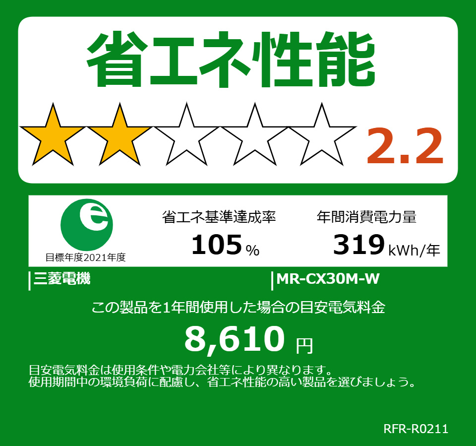 省エネ性能(目標年度2021) | ★★☆☆☆ 2.2 |