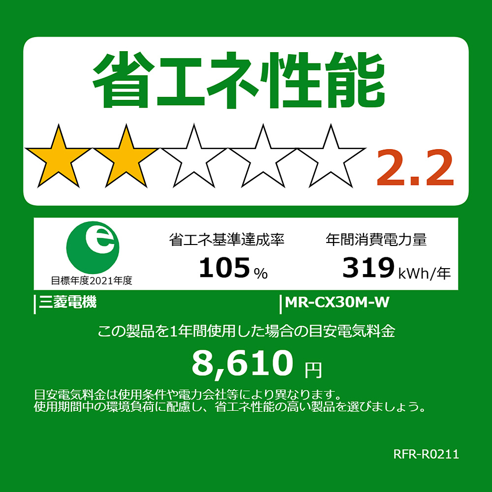 | 省エネ性能(目標年度2021) | ★★☆☆☆ 2.2 |