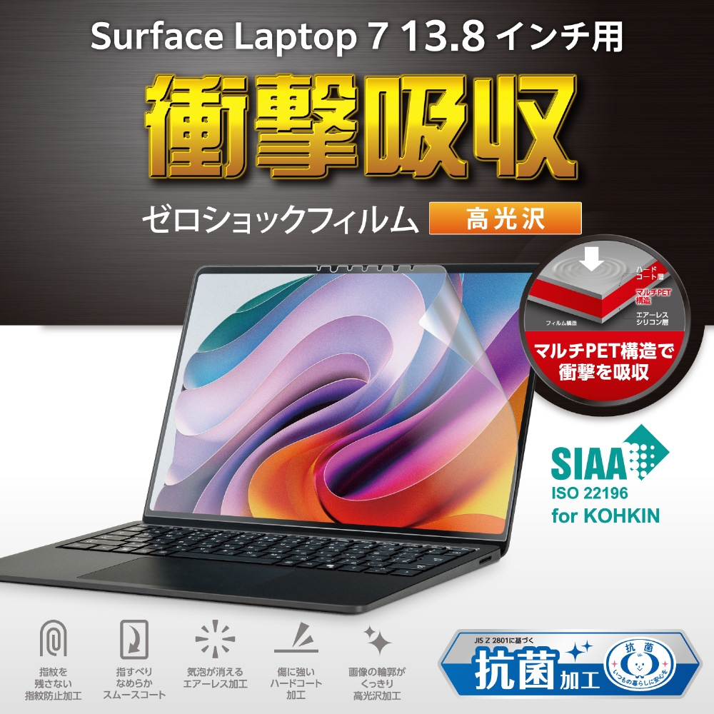 Surface Laptop 7(13.8インチ)用 フィルム(高透明/衝撃吸収/抗菌) EF-MSL7SFLPG