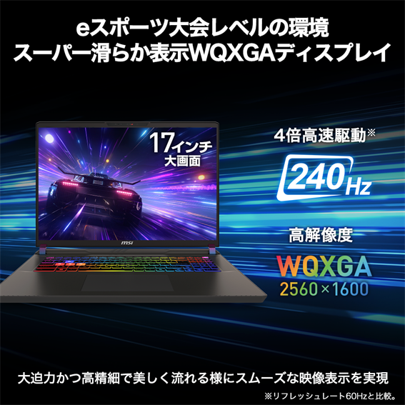 スーパー滑らか表示WQXGAディスプレイ(240Hz)搭載 ウルトラハイスペック大画面ゲーミングノートPC