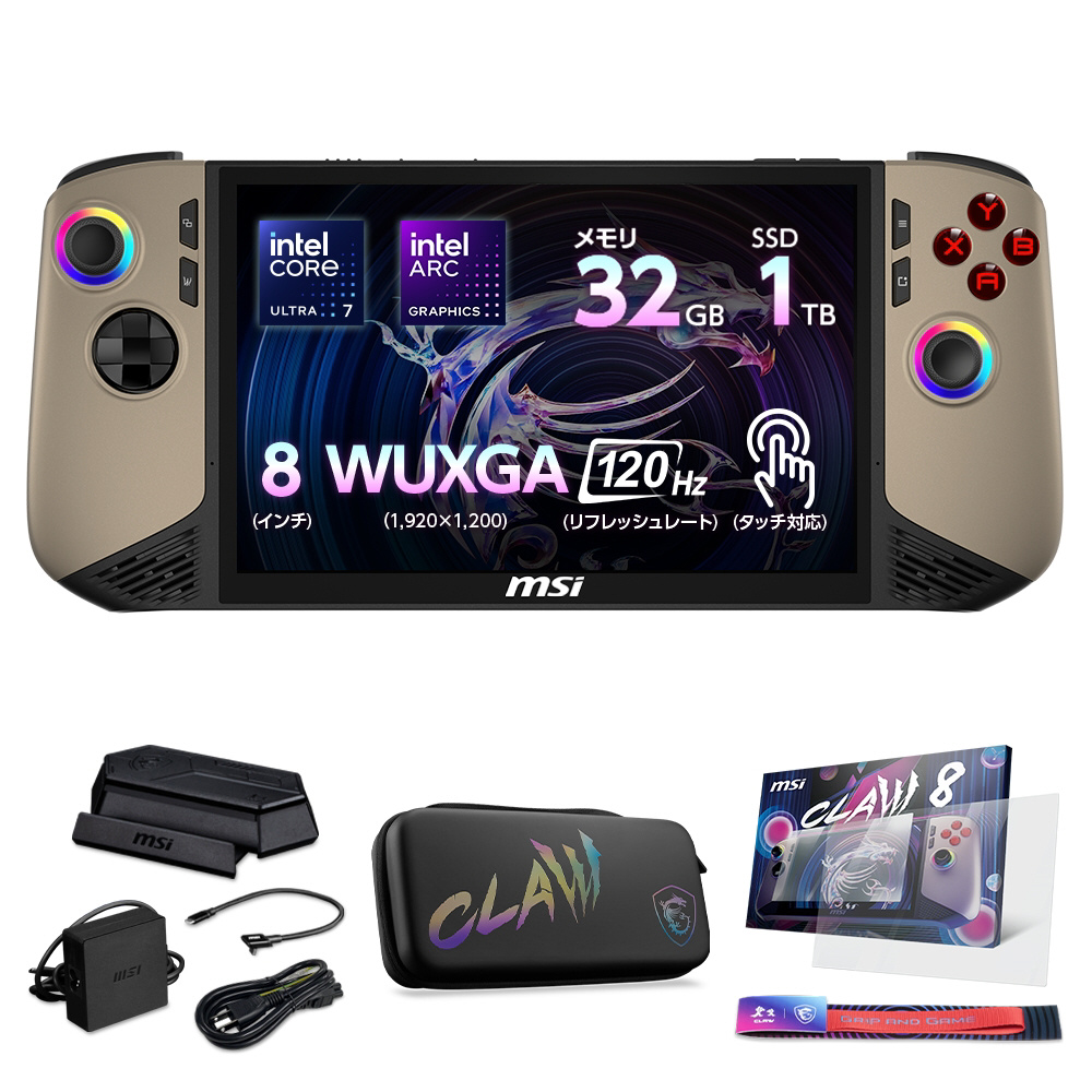 ポータブルゲーミングPC+専用アクセサリー一式 Claw 8 AI+ A2VM ブラック&サンドストーム Claw-8-AI+A2VM-Super-Pack-301JP [8.0型 /Windows11 Home /intel Core Ultra 7 /メモリ:32GB /SSD:1TB] 【sof001】