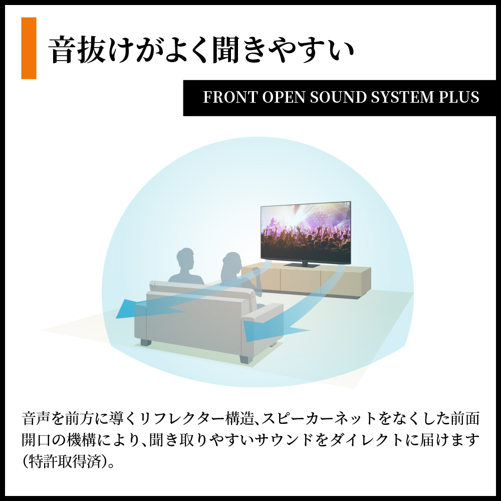 ■前向きスピーカーによる音抜けのよい高音質 2.1ch「FRONT OPEN SOUND SYSTEM PLUS」
