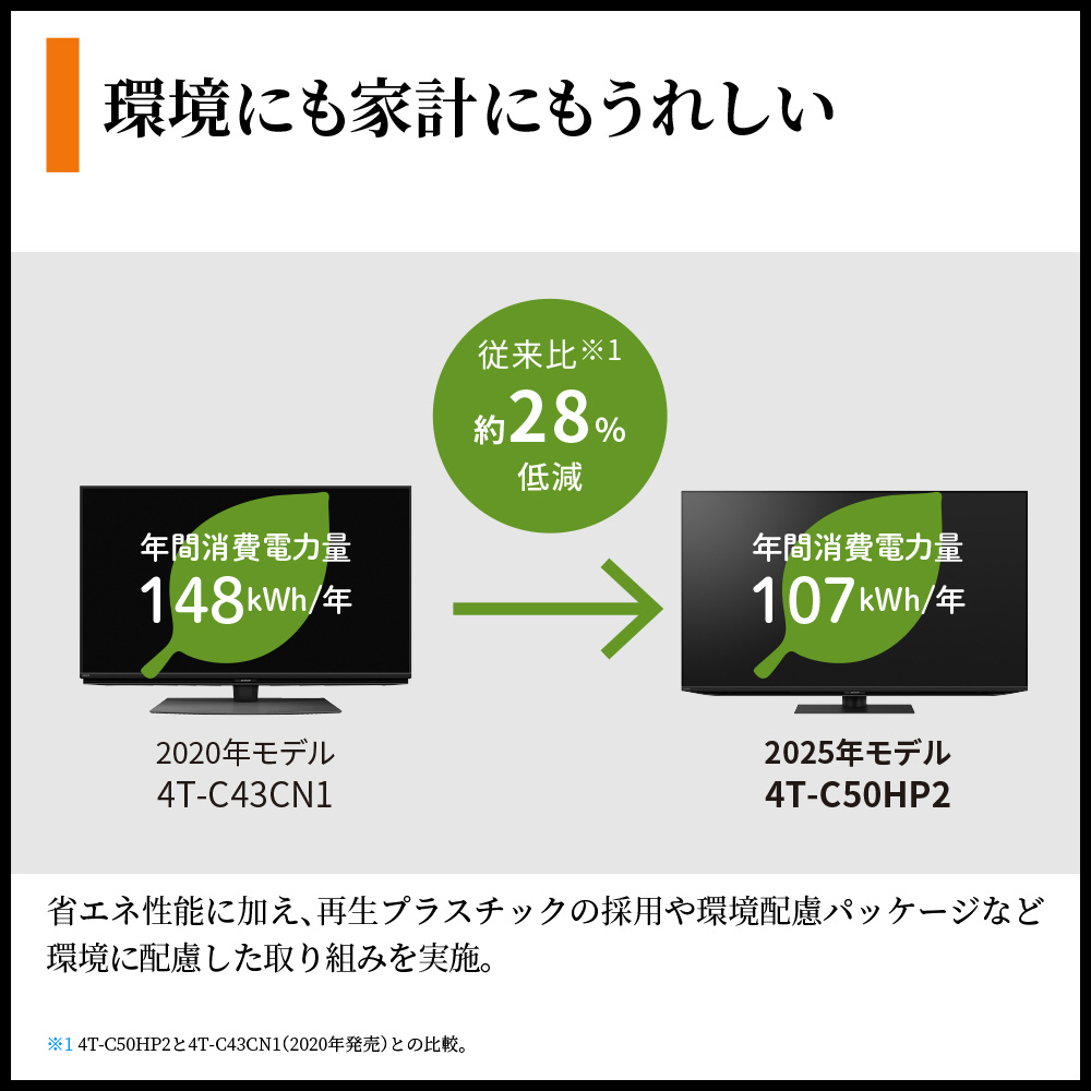 液晶テレビ AQUOS 4T-C50HP2 [50V型 /Bluetooth対応 /4K対応 /BS・CS 4Kチューナー内蔵 /YouTube対応]