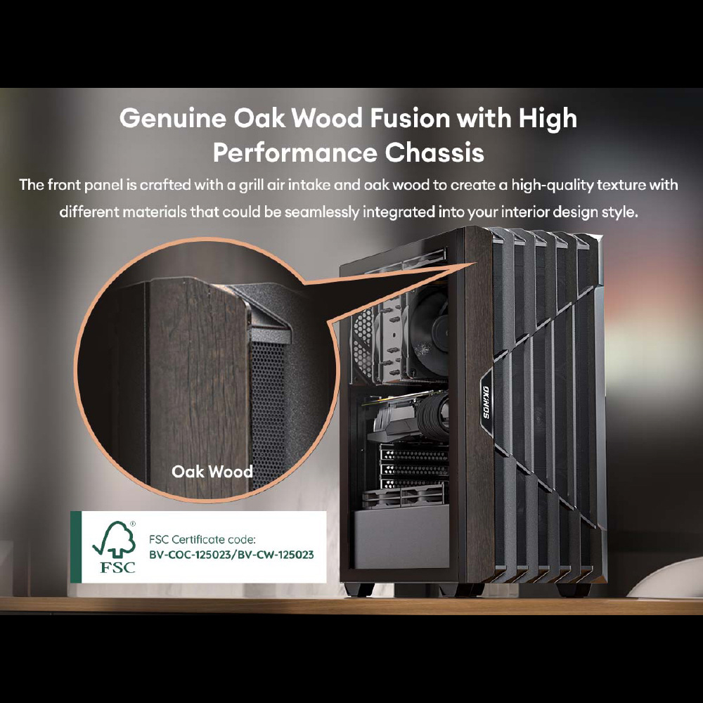 Cypress(サイプレス) 5 AIRは、 ファン4個を標準搭載したATX対応ミドルタワーPCケースです。フロントパネルに木材を使用し、トップとボトムに2つのダストフィルターを備えるほか、最大で345 mmまでの拡張カードスペースを確保、高さ最大165 mmまでのCPUクーラーに対応、3.5/2.5インチ共用シャドウベイと2.5インチ専用シャドウベイを備えています。
