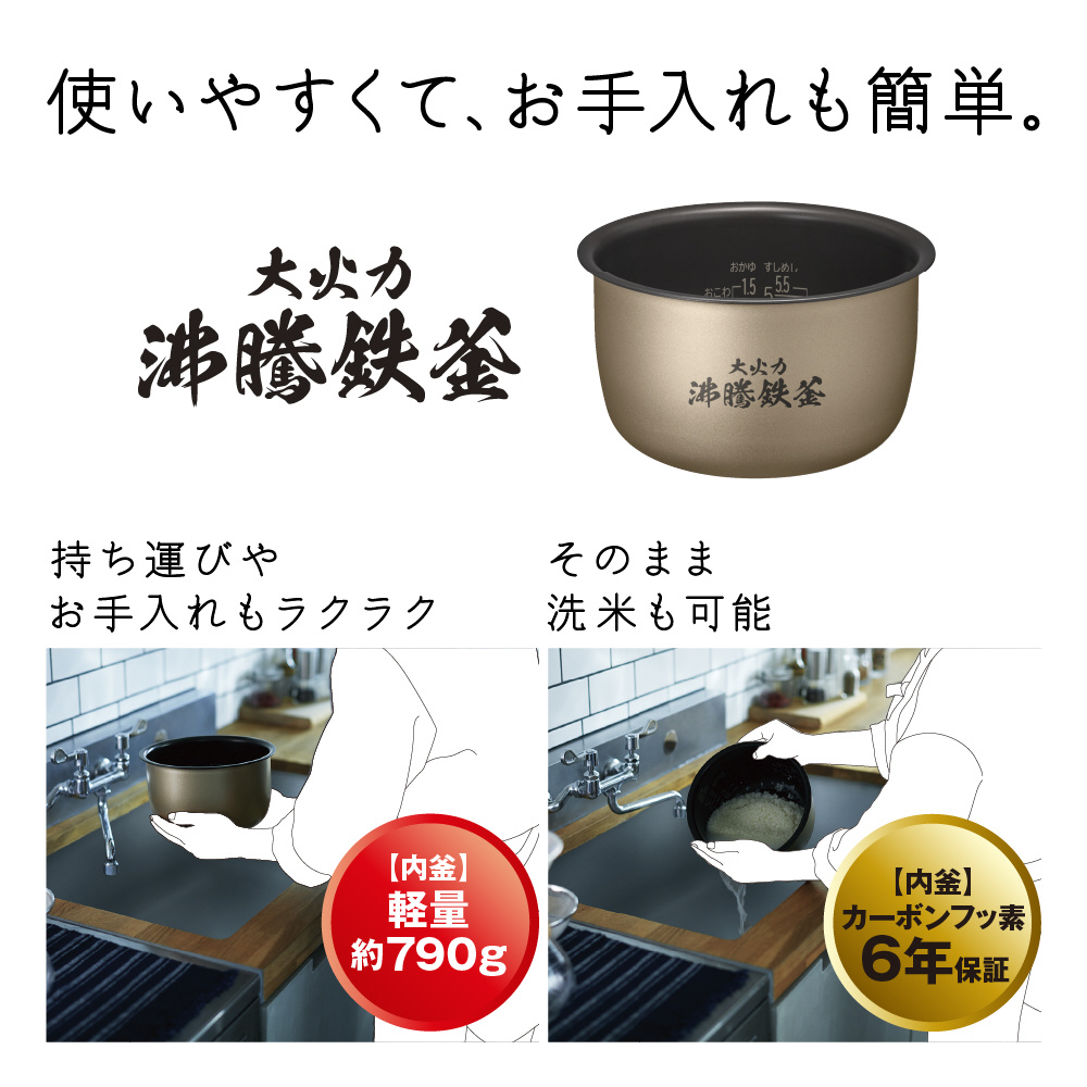 大火力で沸騰、圧力スチームで蒸らす「圧騰甘み炊き」