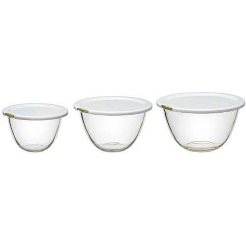 ラップの代わりや、冷蔵庫での保存に便利な耐熱ガラスボウル用のフタ付きボウル3点セット。