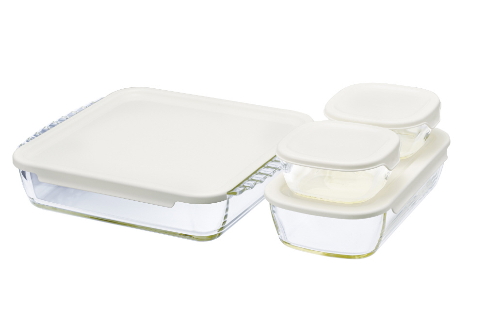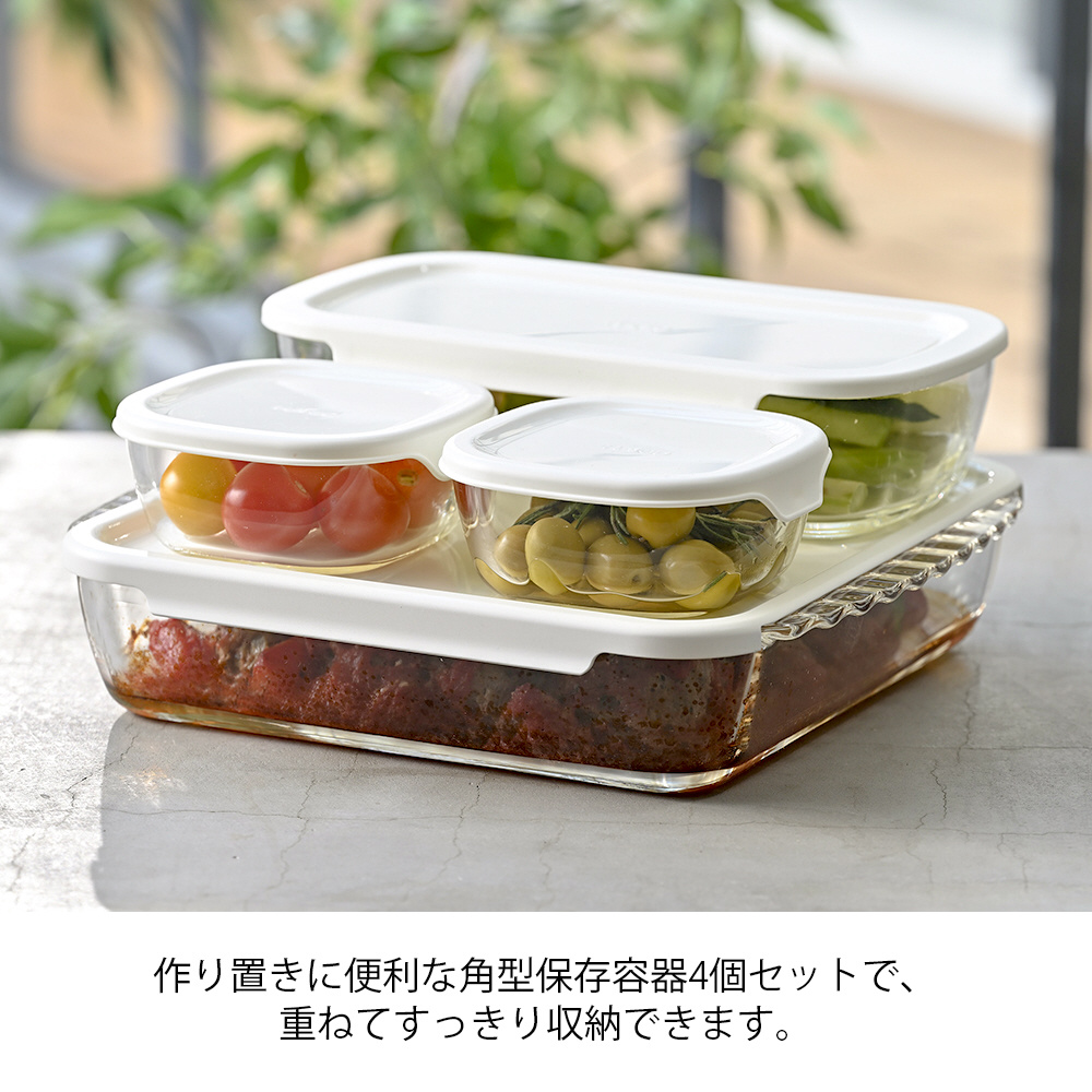 スタッキング耐熱ガラスコンテナ・スクエア4個セット HKOZ-5004-OW