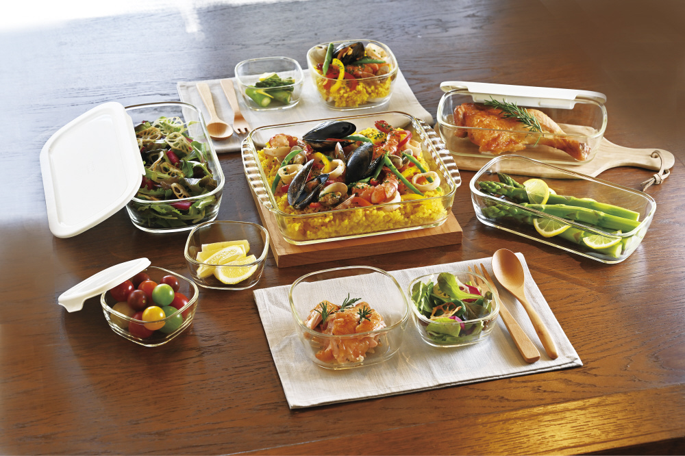 スタッキング耐熱ガラスコンテナ・スクエア10個セット HKOZ-1002-OW