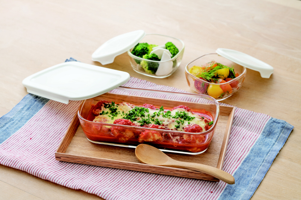 ■色々な料理の保存・調理に使え、食器としても使える耐熱ガラス製の保存容器3点セット。