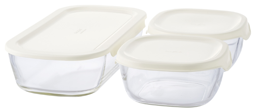 スタッキング耐熱ガラスコンテナM3個セット KSTL-M-3006-OW