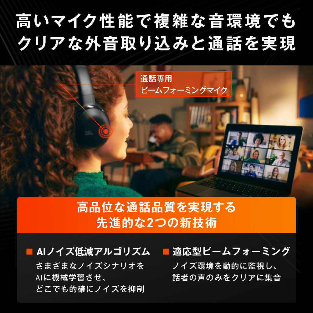 新リアルタイム補正機能付きハイブリッドアクティブノイズキャンセリングワイヤレスヘッドホン。